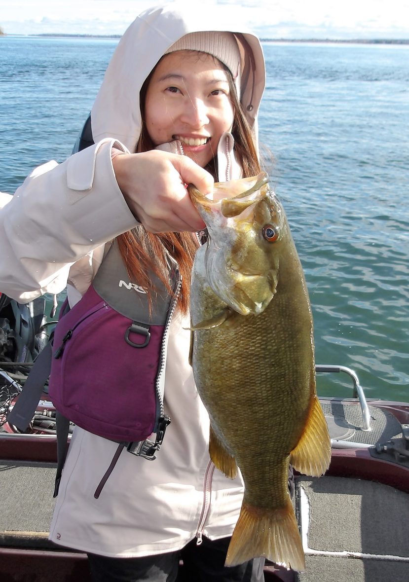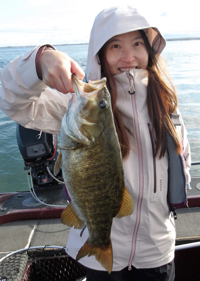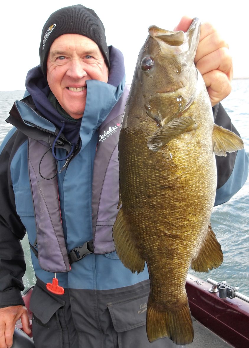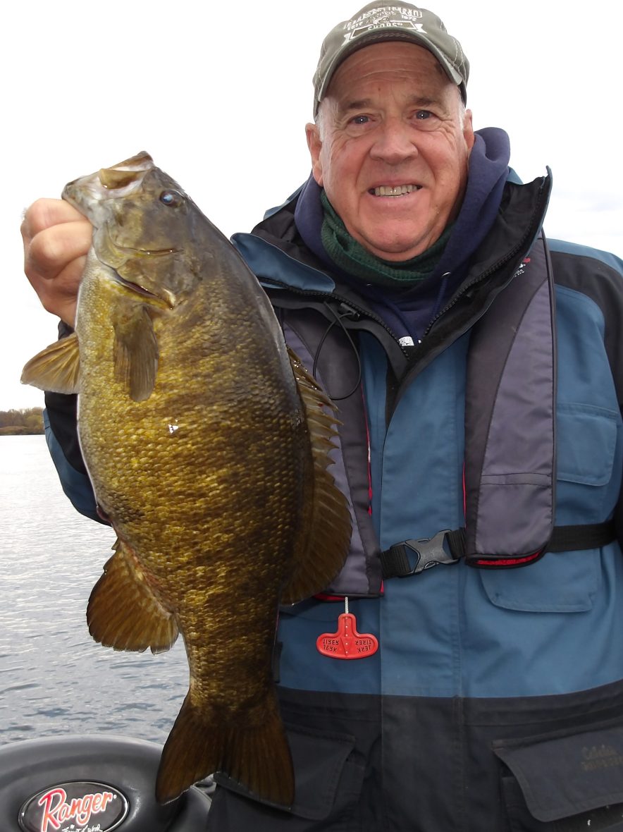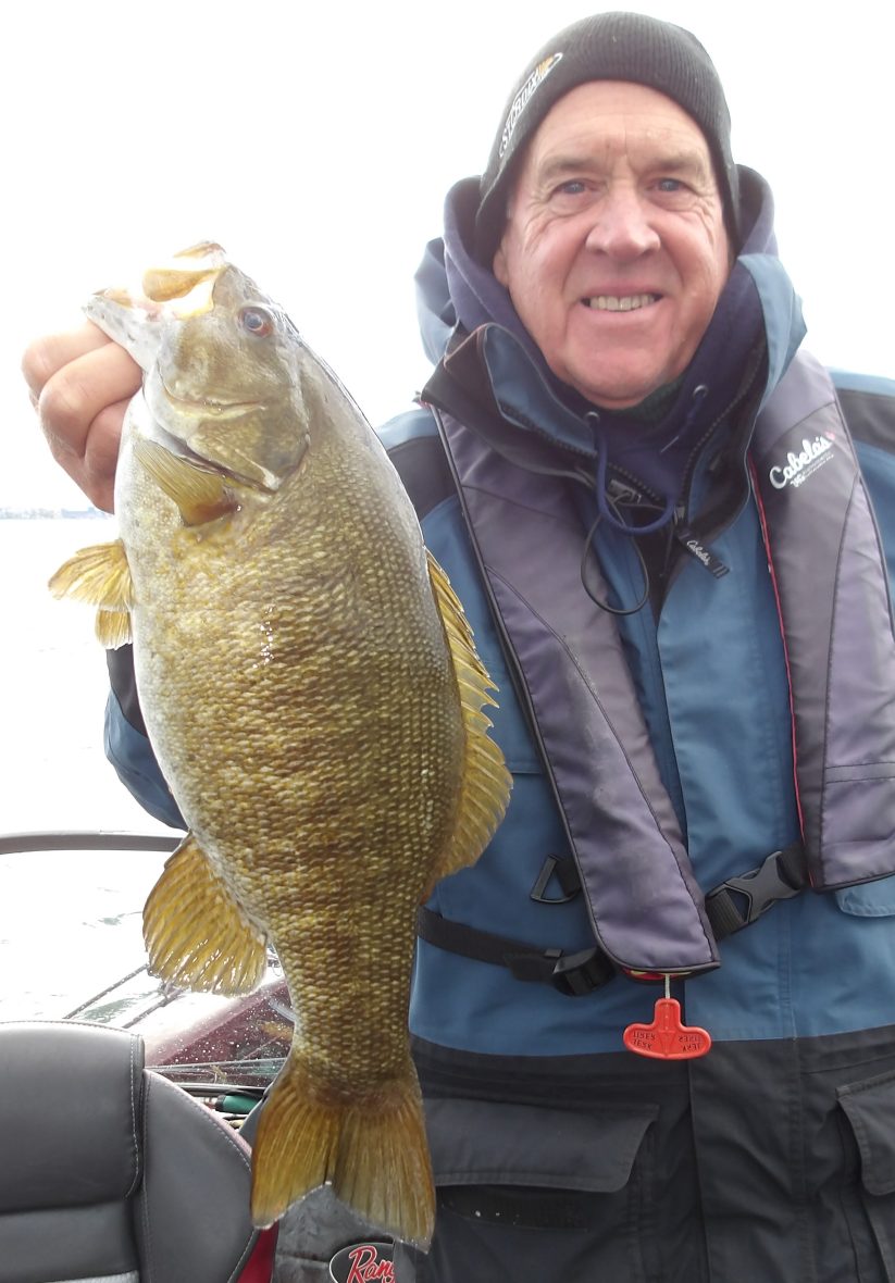 Andre and his friend Gerard joined me today on the coldest morning this fall, so far! Add to that the big NW winds and this made it even chillier. We made an attempt at locating some sturgeon to start, but soon changed it up to bass instead. After 3 locations proved to be bleak at best, I opted for smallies.
