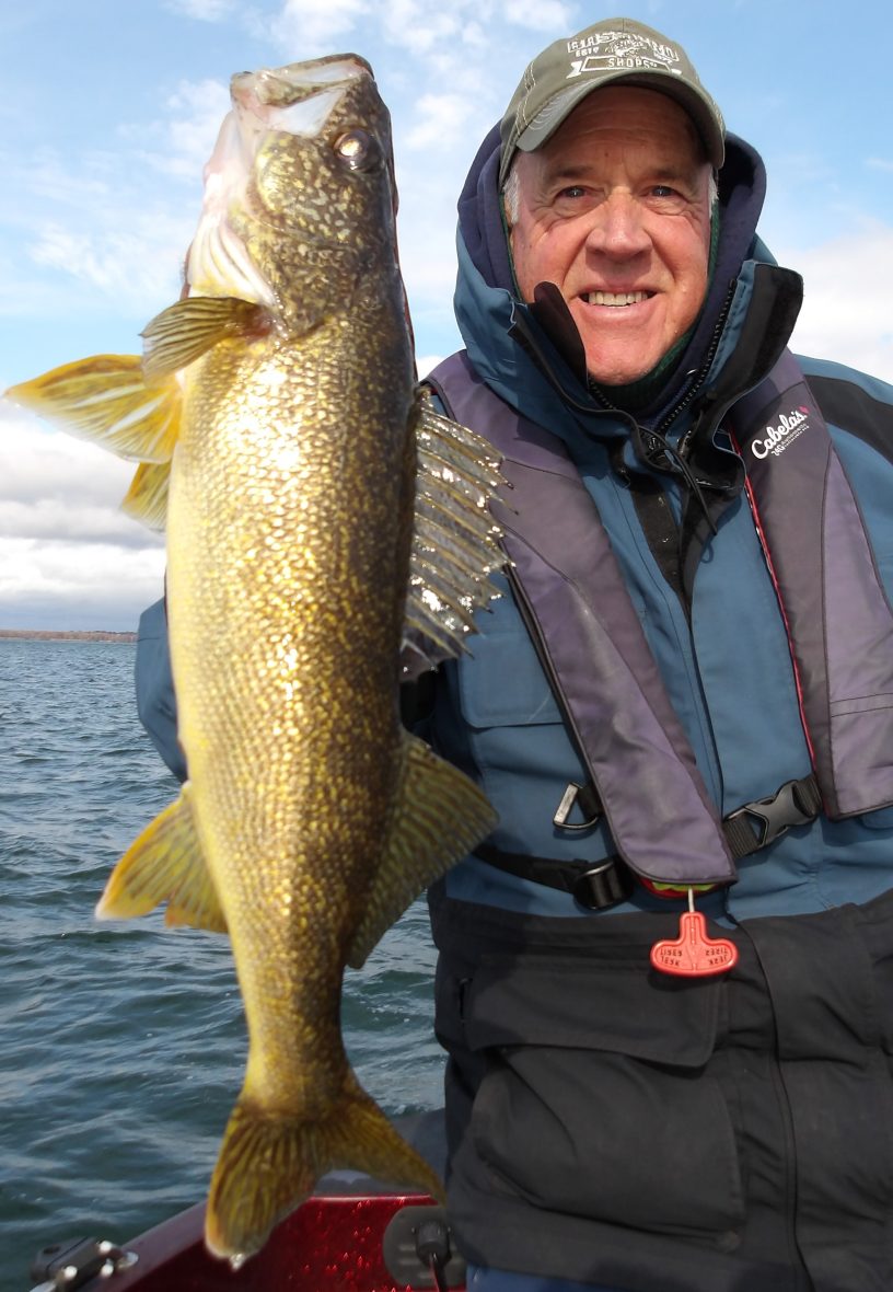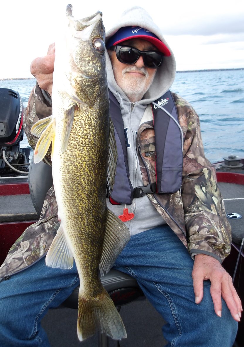 Although the ride was a little bumpy getting to our first spot, they managed to get into some fish quickly. Both bass and walleye were caught, but I really had to work hard in the big winds. I was making drifts along a deep weed edge and needed the aid of the big engine just to keep them on the fish. Somehow, I managed and they caught a number of good fish in the process. A couple of the walleye were too big to keep and were released after a few quick pics. One of them made the cut however and went into the box for Craig to take back home. We remained in the area until the fish just quit biting before making a move to another nearby spot. I just hoped that we would be able to fish!