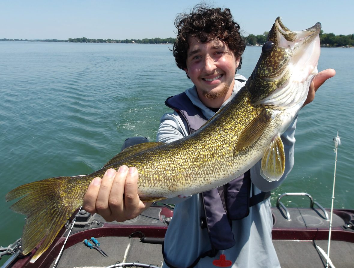 Although the conditions were tough with 90 plus degree heat & humidity and flat water, we grinded out a few of the species on their list. Her son August managed walleye, bass and a good-sized sturgeon at the worst part of the day. We fished from about 12:15 until 4:30 PM. Brutal, to say the least!