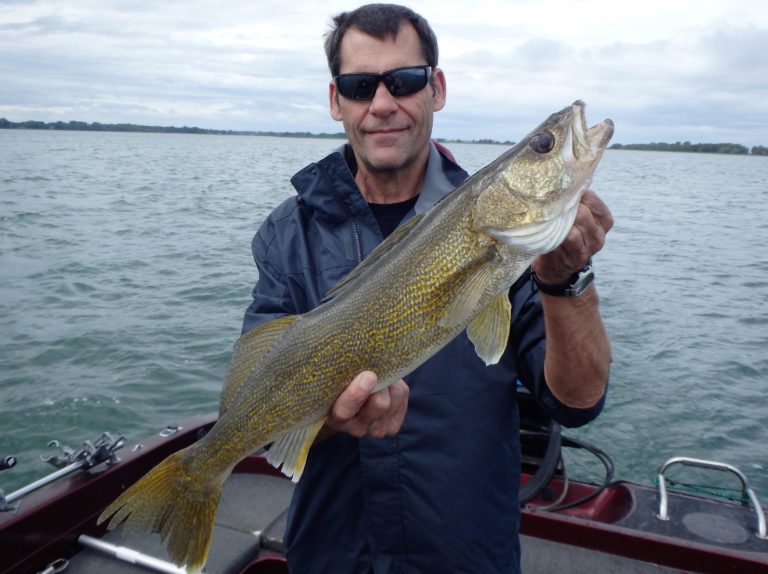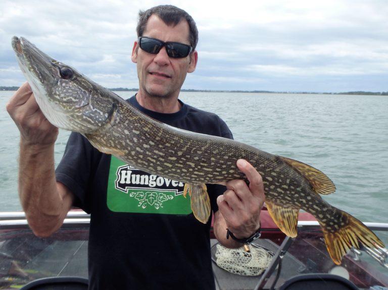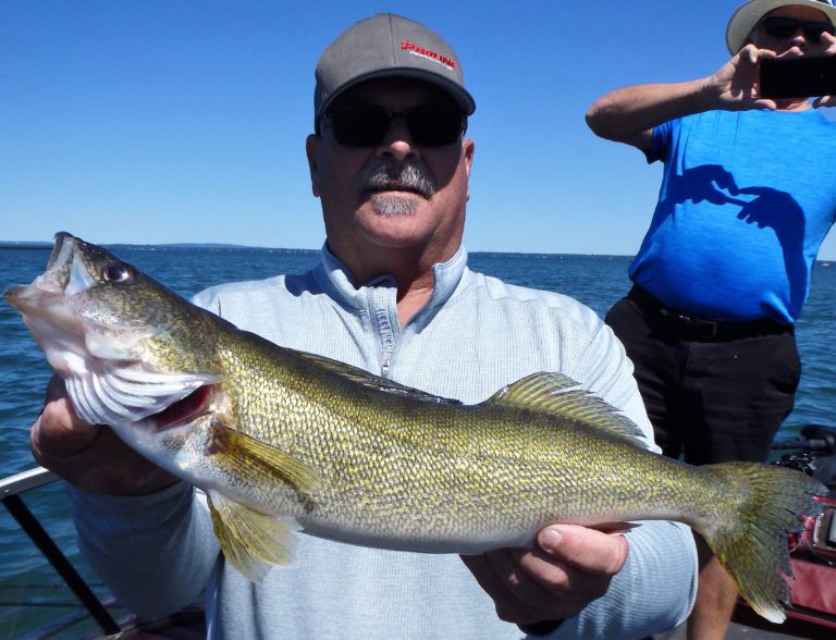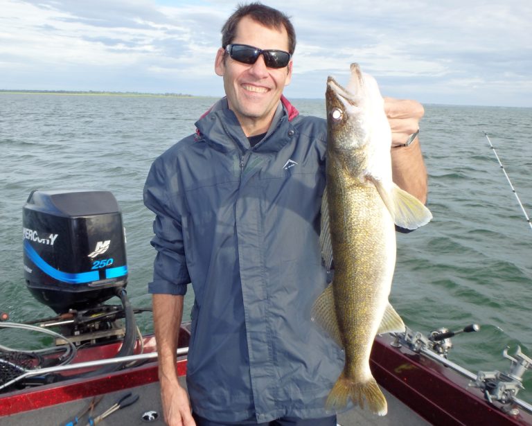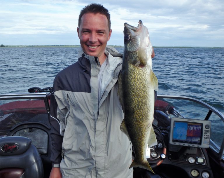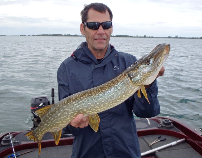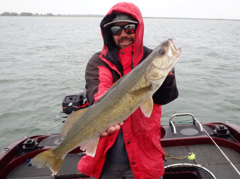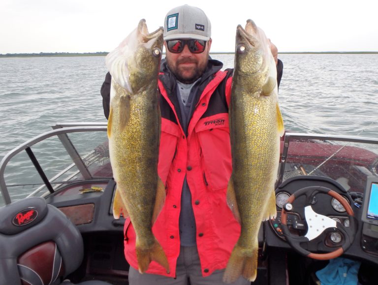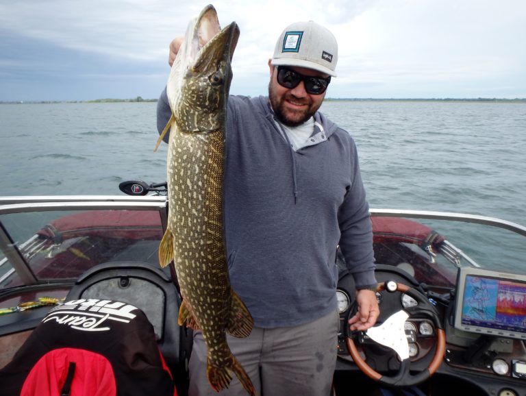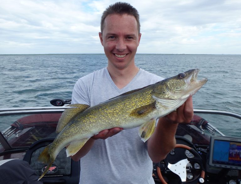 We were now on good fish and hooking up on a regular basis with both pike & walleye. The other boat however wasn’t as fortunate as they never hooked into a thing. Despite them being almost on top of us at times, I just stayed out of their way and continued firing the reels. Right location, wrong presentation I guess! Eventually they just trolled out of the area in a straight line, barely visible in the distance.