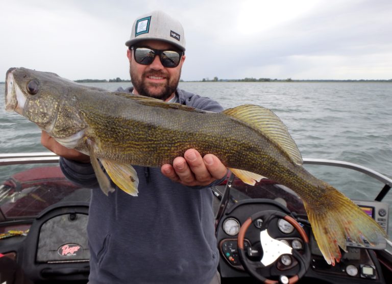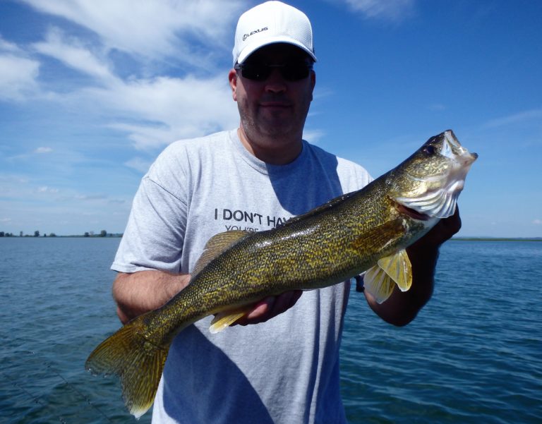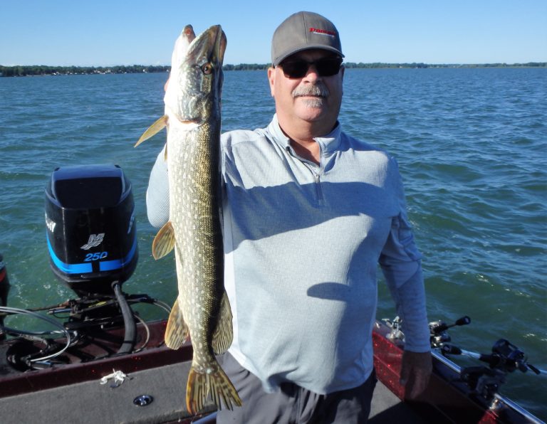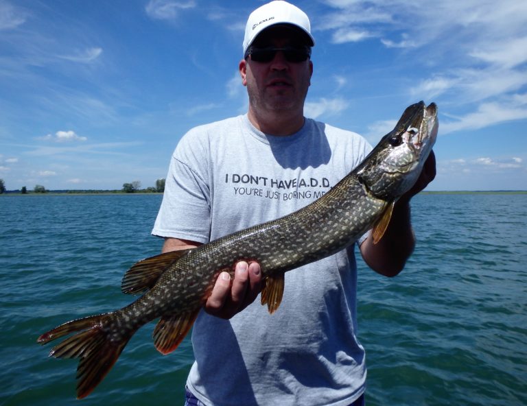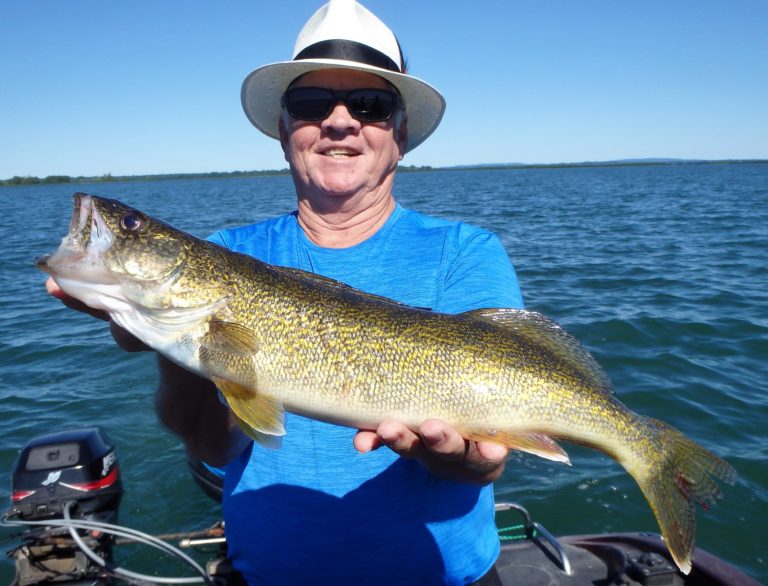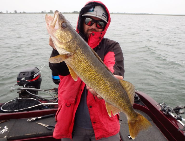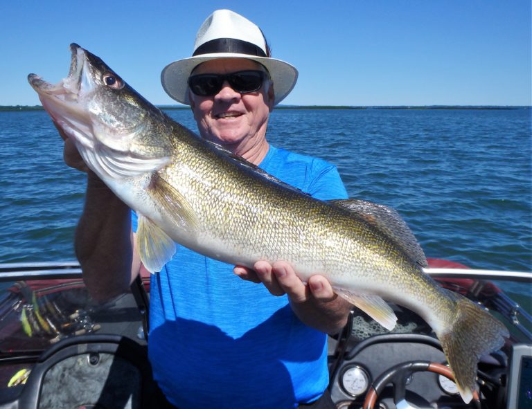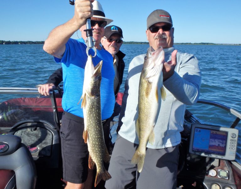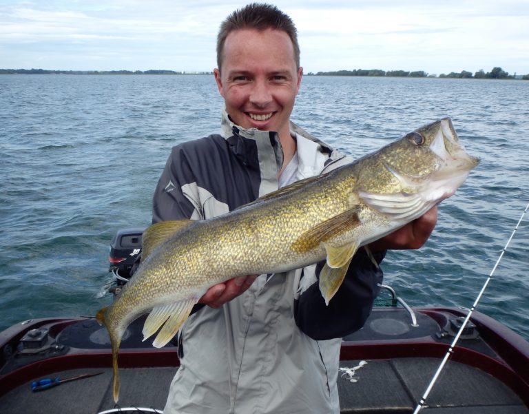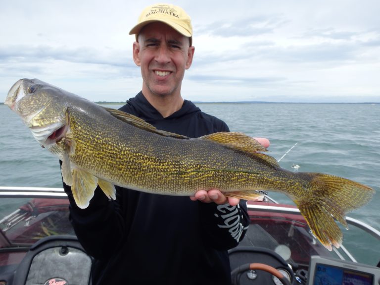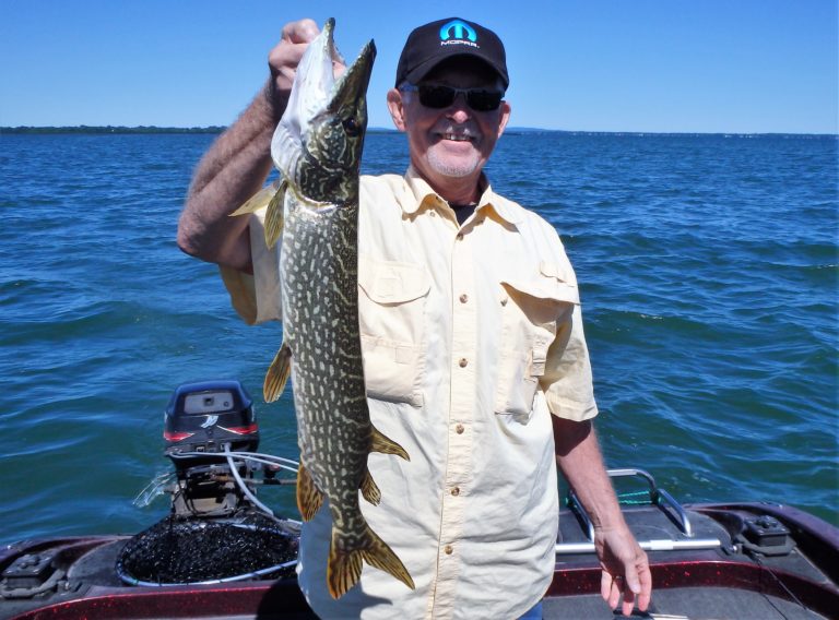 We were now on good fish and hooking up on a regular basis with both pike & walleye. The other boat however wasn’t as fortunate as they never hooked into a thing. Despite them being almost on top of us at times, I just stayed out of their way and continued firing the reels. Right location, wrong presentation I guess! Eventually they just trolled out of the area in a straight line, barely visible in the distance.