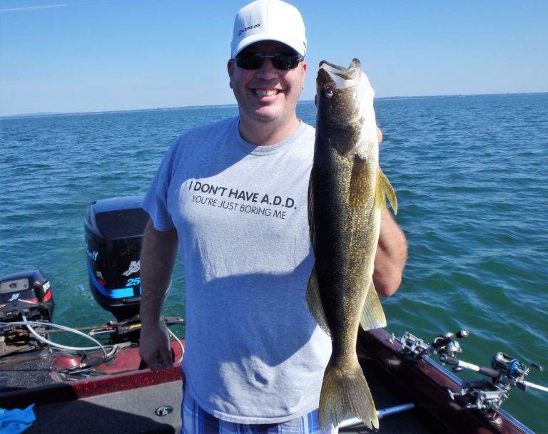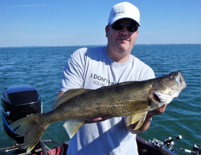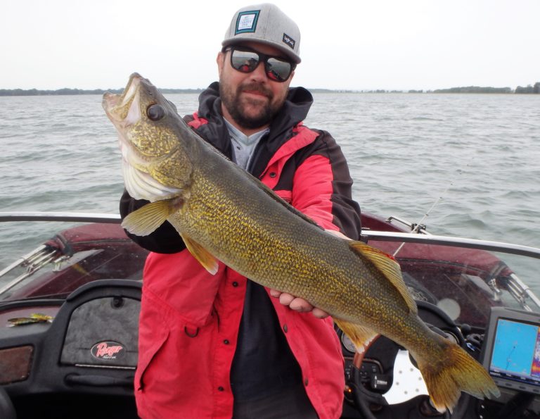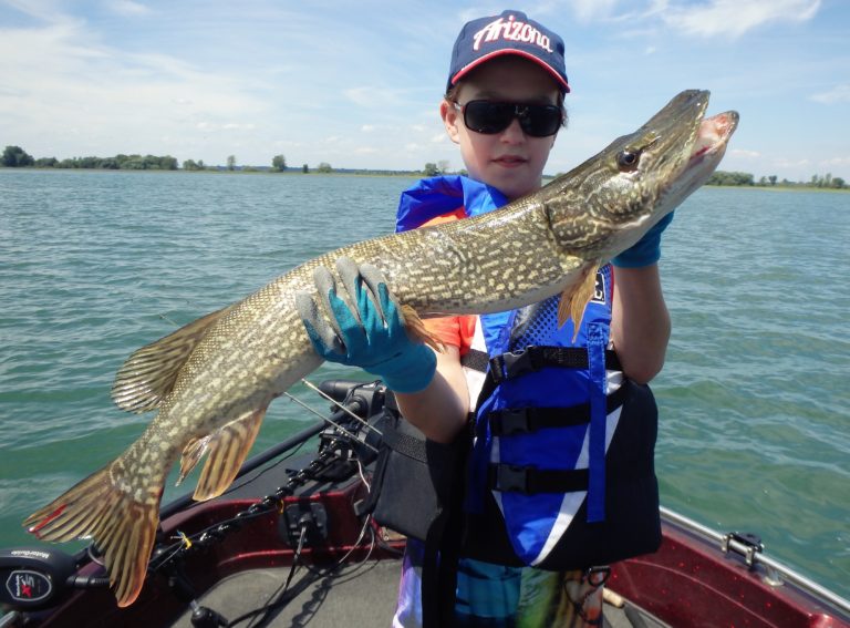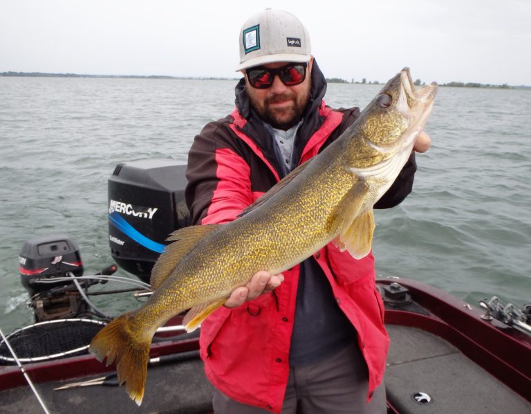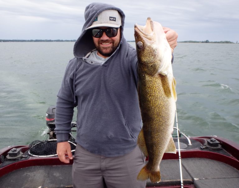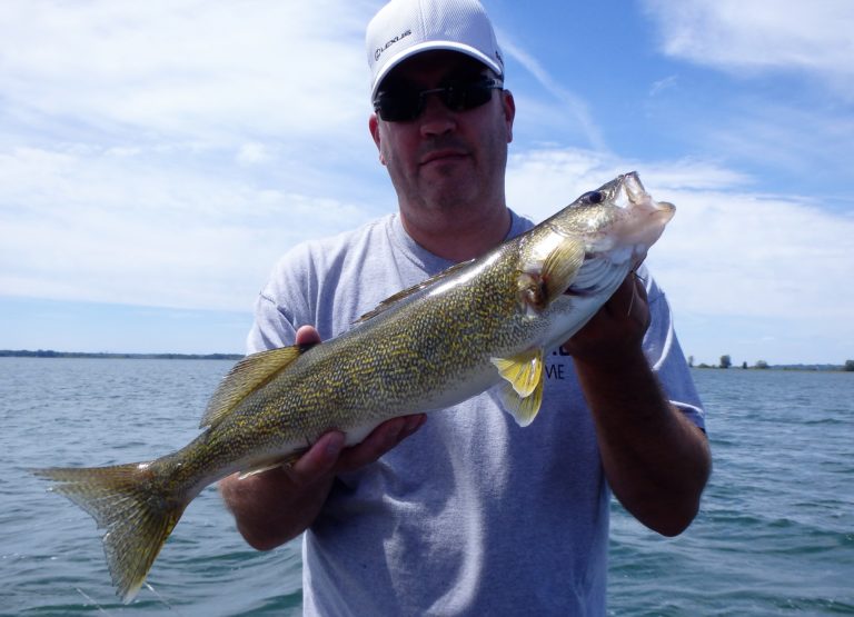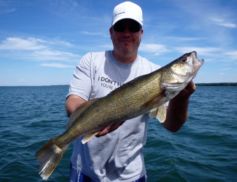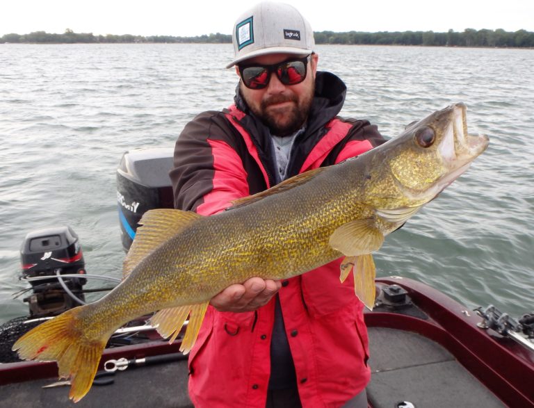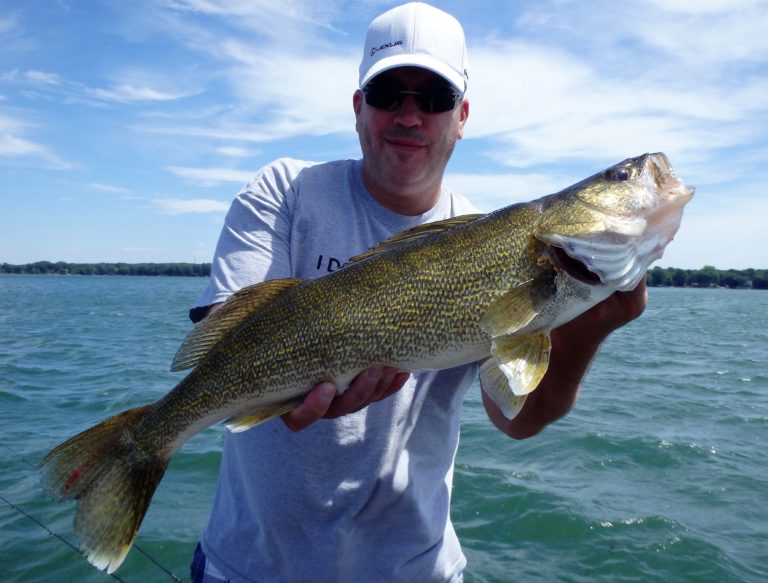We were now on good fish and hooking up on a regular basis with both pike & walleye. The other boat however wasn’t as fortunate as they never hooked into a thing. Despite them being almost on top of us at times, I just stayed out of their way and continued firing the reels. Right location, wrong presentation I guess! Eventually they just trolled out of the area in a straight line, barely visible in the distance.