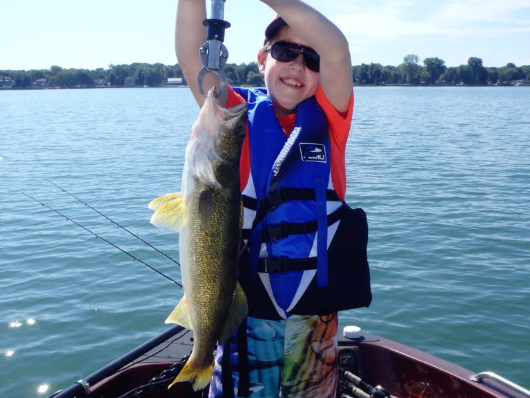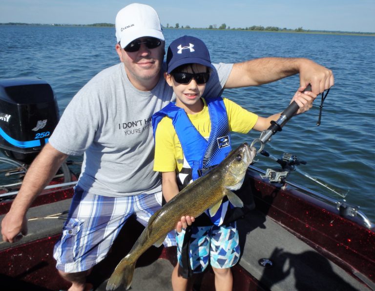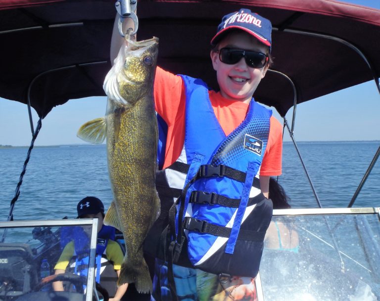 By covering the water slowly they were both able to get into several of these bronze beauties but still managed to lose more than they hooked. Fortunately some of the better sized ones made their way into the boat before we had to go. Andy landed a couple of really nice ones and Cameron did as well. He even caught another walleye from the same area as an added surprise fish!