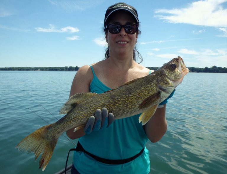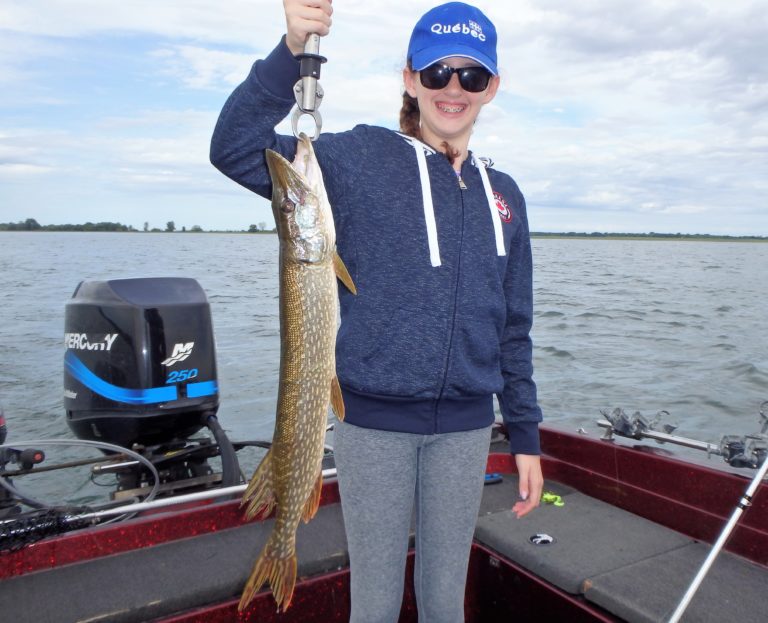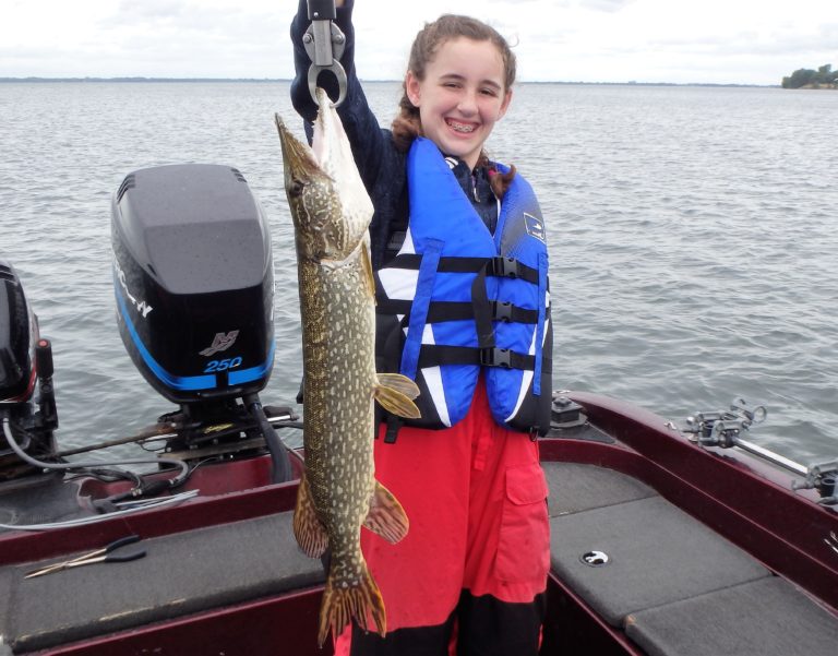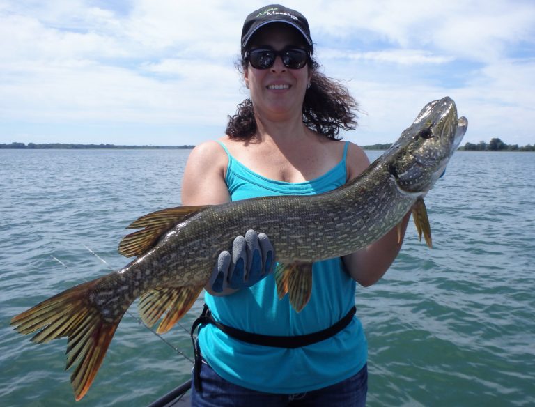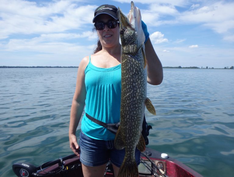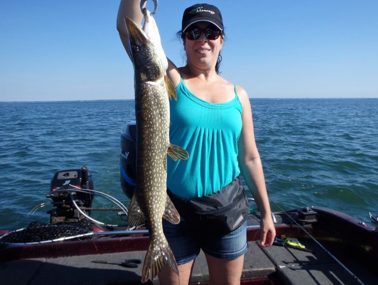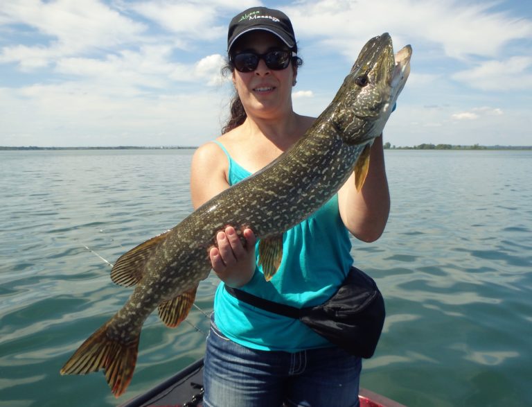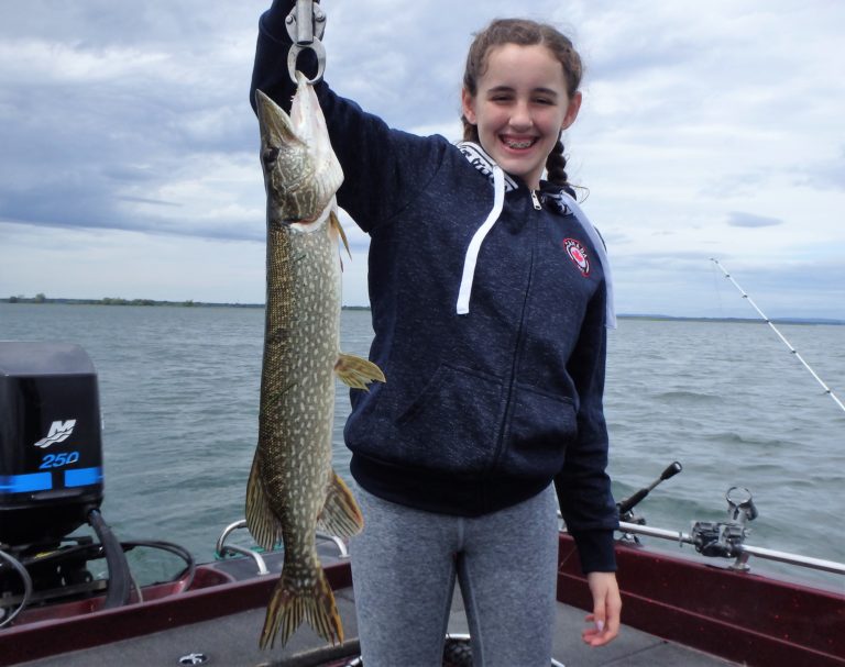 I was pretty sure we were going to have a great day with overcast skies and a good chop on the water. The reels were firing often throughout the morning with both northerns as well as good walleye being caught. Katie was having a blast reeling in both and many fish too! Although I did have to work a little harder at locating them, they were quite active. Her father also managed plenty of good fish and I think he even landed his largest walleye as well. Katie still had bragging rights with hers though as well as the biggest pike too.