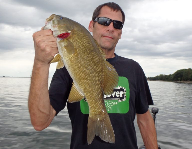 Andy had wanted to try for some smallies late in the afternoon and after many more pike & walleye, we switched it up. I headed closer to shore where I knew they would be able to get into some decent fish and they weren’t disappointed. Despite the overcast that had returned, I was able to find what I was looking for and they threw soft plastics for the fish in this area.