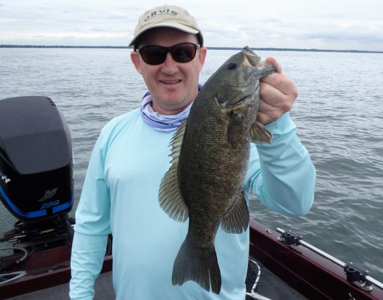 I was going to target the bass a little shallower now due to the post spawn and decided to hit a couple of points that I knew. Although one didn’t produce more than a few fish, the other was pretty good and there was plenty of action. Tony seemed to be doing better from the back of the boat however and not for any particular reason. They were both throwing the same thing to the same spots and he just had the hot rod today!