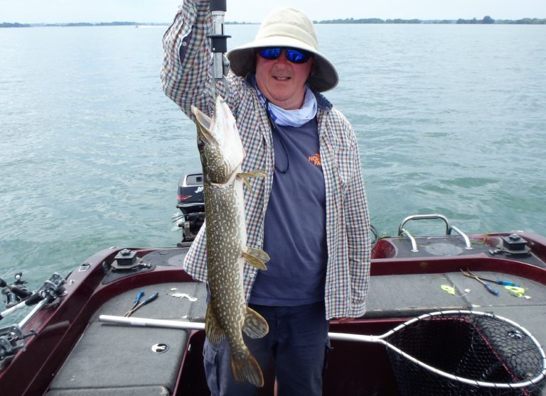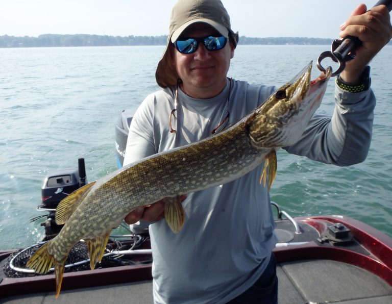 It didn’t seem to matter where we fished today, we just couldn’t seem to escape the northerns! It was nice to hear the reels scream but with zero wind and scorching heat from the sun, we didn’t want to leave the comfort of the top. I probably could have fished slower by drop shotting but we needed the shade and kept at the troll.