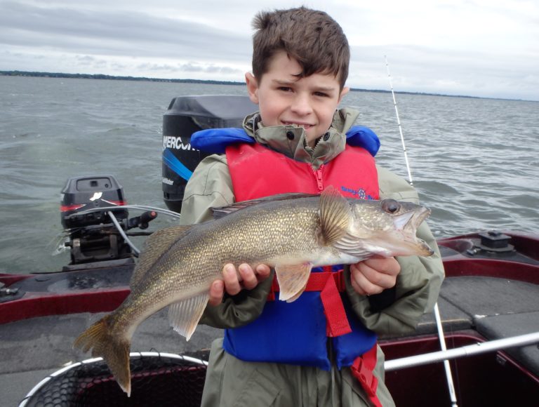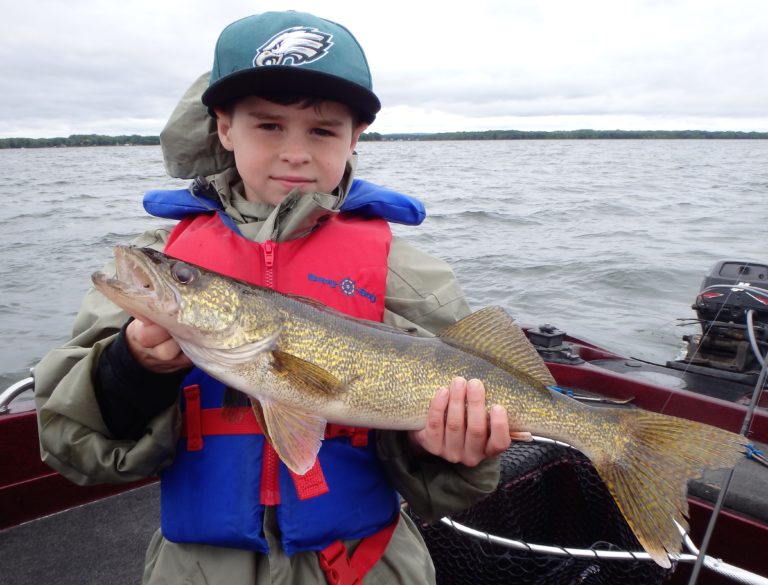 We finally made it to where I wanted to fish and I knew they were going to catch! I set the lines and began trolling the area I had ended on the day before. Within minutes the first reel went off and a smallie took to the air, throwing the hooks. Back in it went and the next reel to fire gave junior his first ever walleye. He was on a mission today to break his record of landing 13 fish back in Florida and I aimed to make it happen! From this point on he would be counting each and every fish. Plenty of pics were taken before releasing his catch too!
