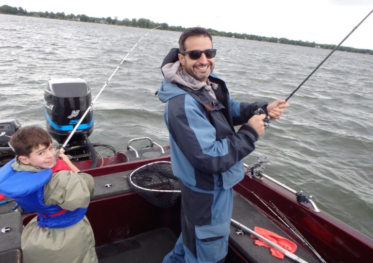 Richard and his son, Rich junior were with me this morning, hoping for a good half day of fishing. I knew I had my work cut out for me with the heavy rains we had, followed by giant winds. I wasn’t even sure if we were going to get out! They were blowing 20 to 30 knots from the west and the lake was big!