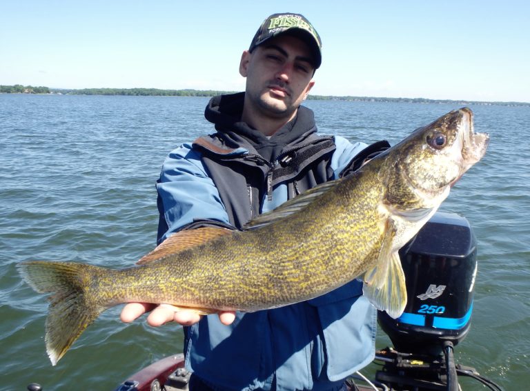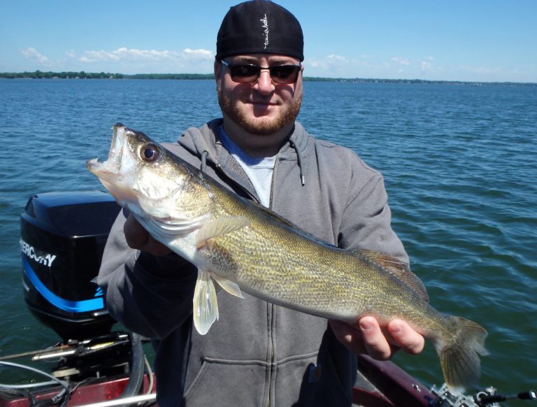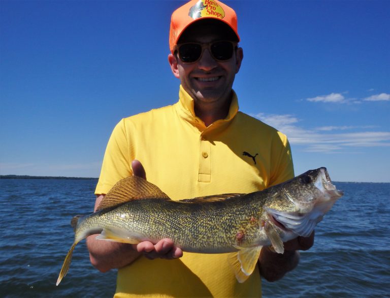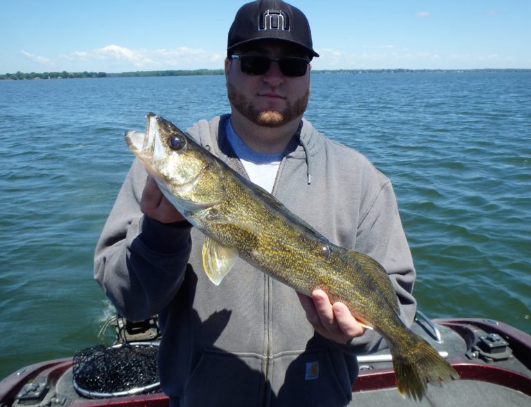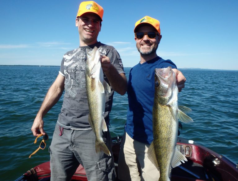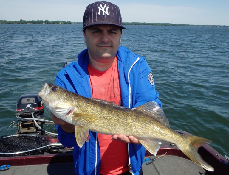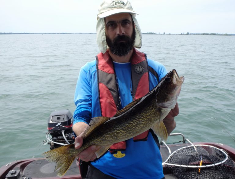 The morning started out a little slow with Dave and his son Matt along with his brother in law Paolo. We trolled an area that had been on fire for just about everything, only to struggle for our bites. A few small pike were landed and then Paolo managed to get a decent sized smallie. Good fight but not what we were after! I covered plenty of water looking for the walleye but never really found them until moving further offshore and into deeper water. Along the way, there were many more northerns landed and lost! They were really hitting light and most were even coming off in the net when landed. They just didn’t seem to want to eat! Time to relocate!