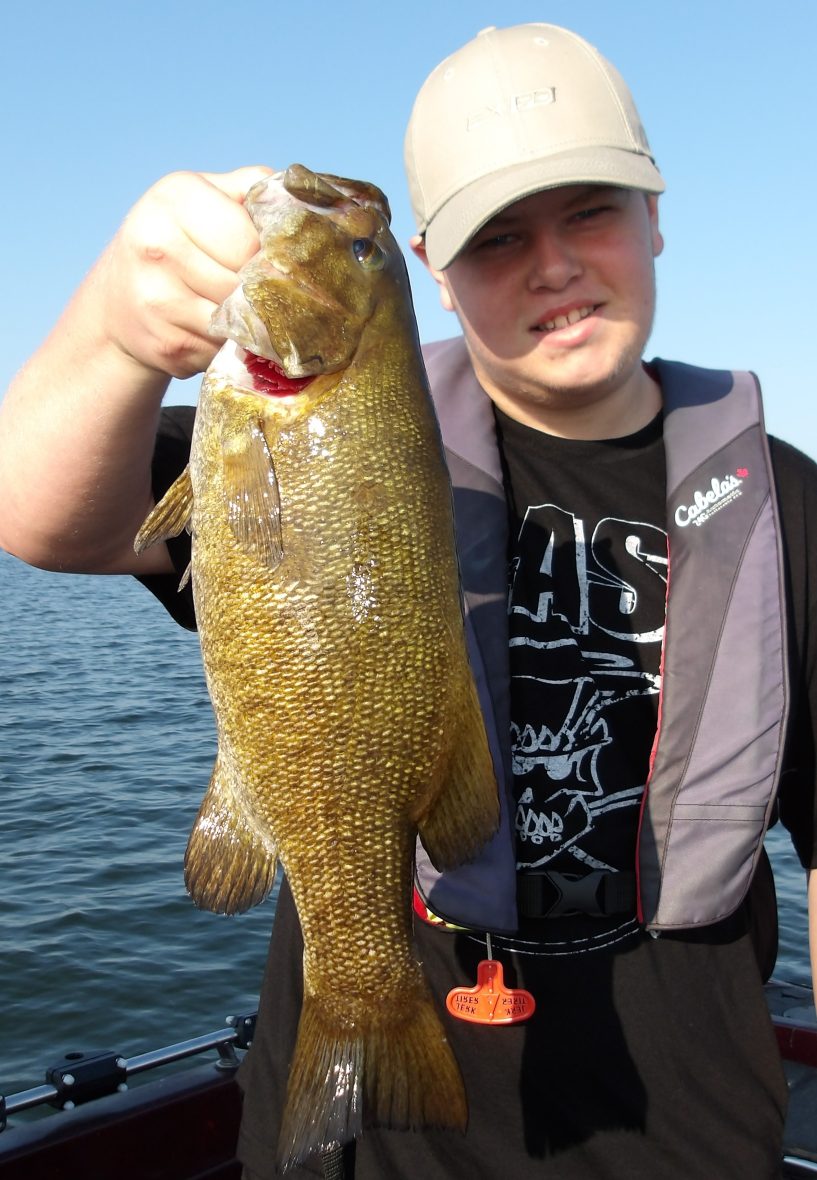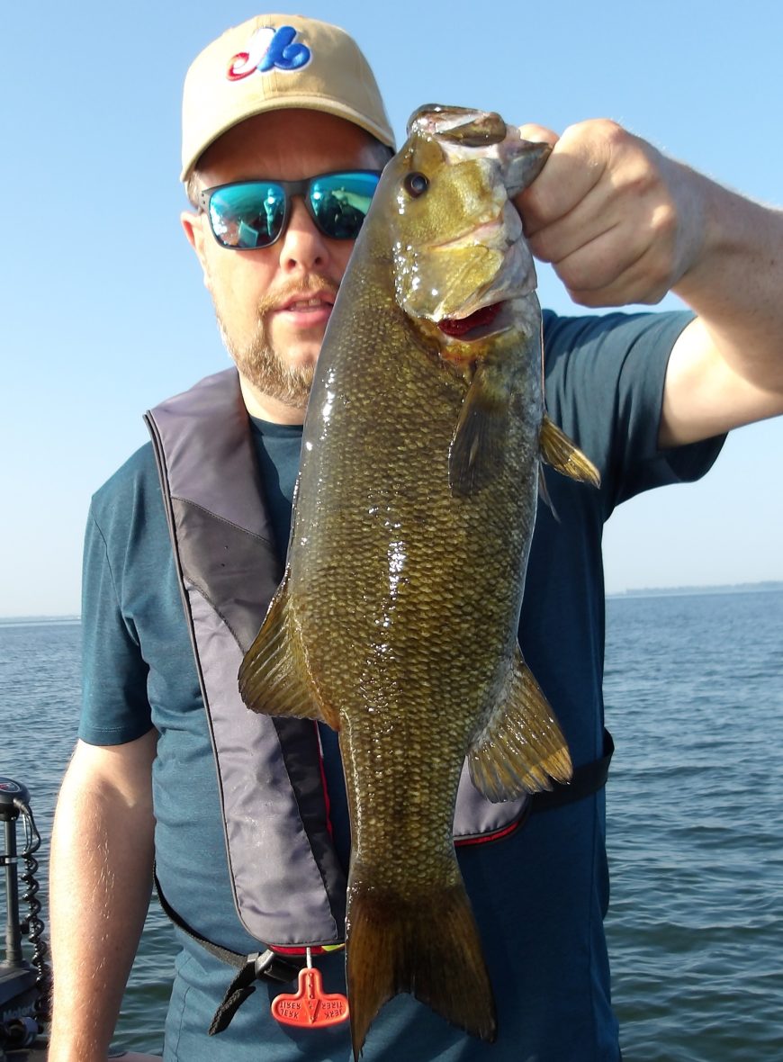 We made a series of drifts, while dropshotting over vast flats and everyone caught plenty of fish. Both walleye and bass were landed but it was James that caught the biggest fish today. He not only landed the largest bass but boated the biggest walleye as well.