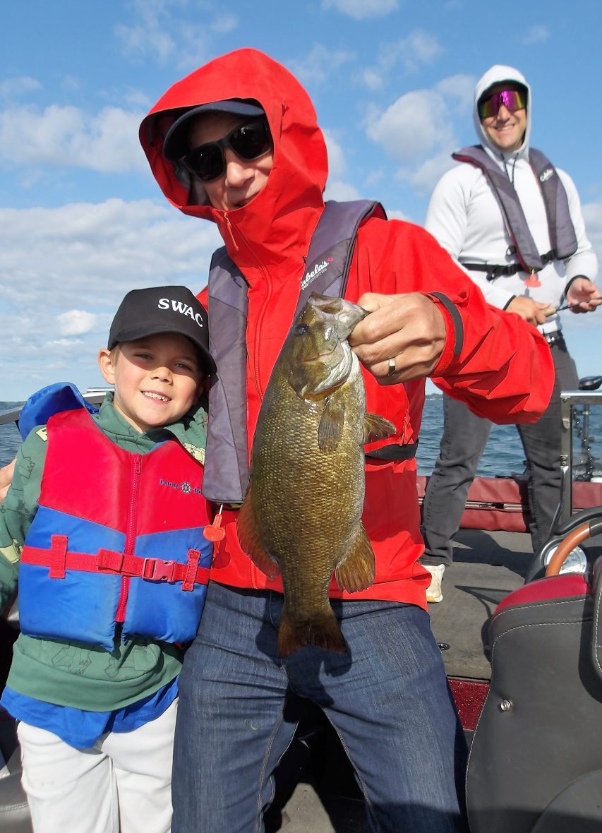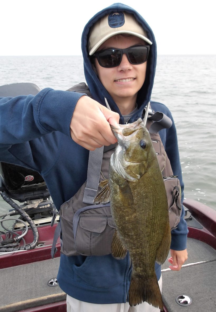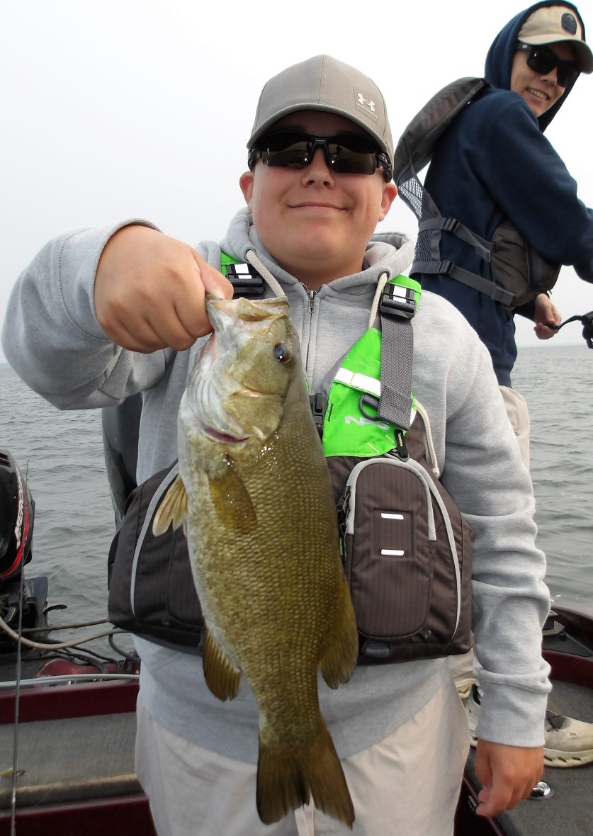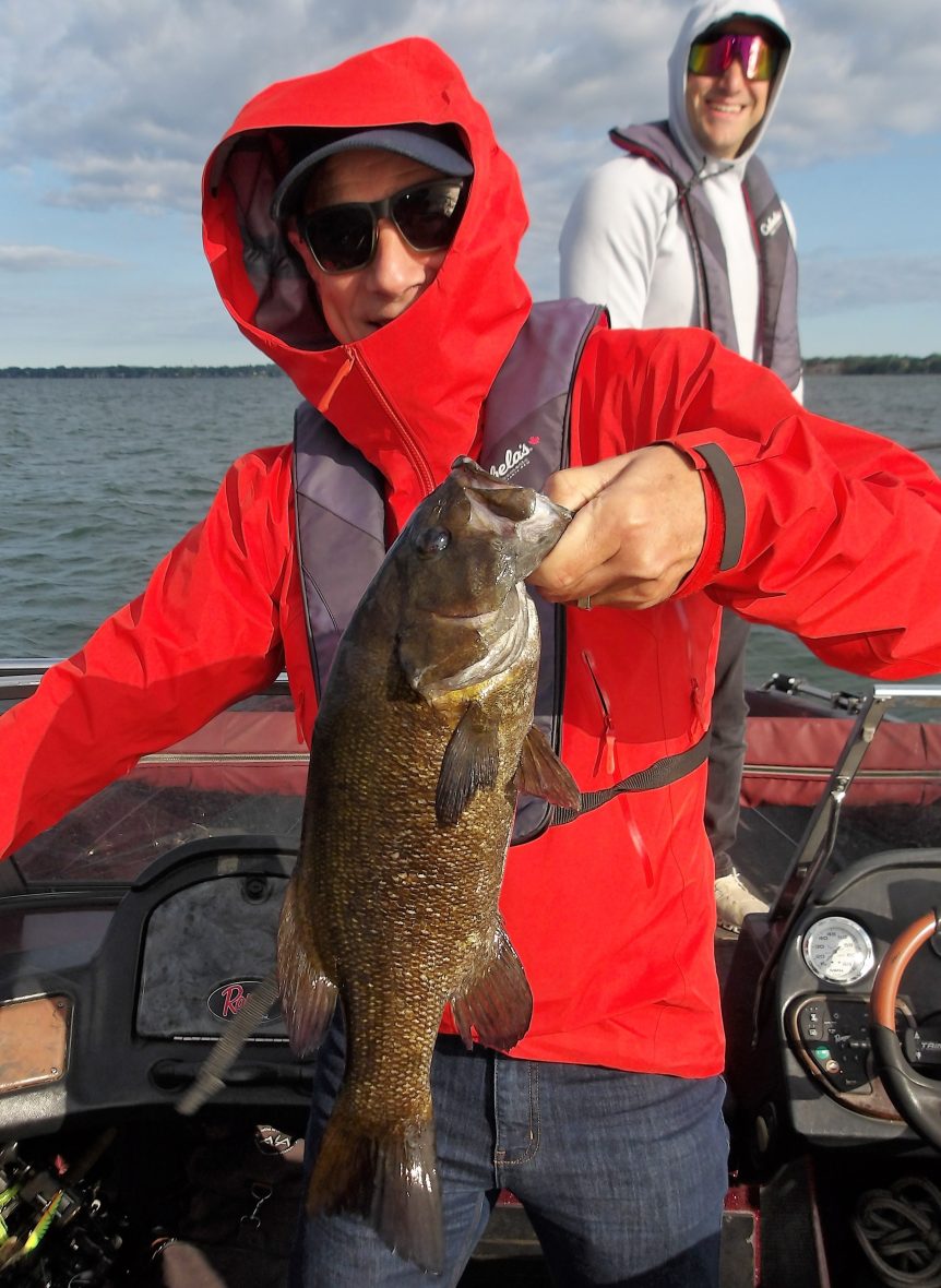 Another day began cooler than expected, with air temps below 60 degrees, The wind was out of the NE for the second day in a row and boat control wasn’t easy! Leonard was with his son Victor and father-in-law for half a day and it was a challenge. Although I marked lots of fish, they didn’t really want to bite. It ended with them working hard for the fish they caught and top honors went to Victor with the biggest bass, in the last minutes of their trip!