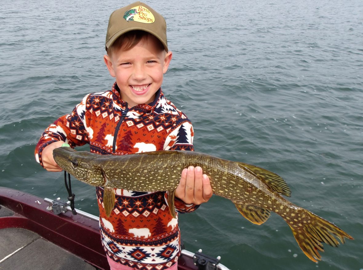 After trying a couple of other dropshot areas with similar results, I opted for a long run to see if I could possibly get a trolling bite going. The grand kids were finally starting to warm up now, with the sun and extra clothes they were wearing and it looked doable. One pike and 1 walleye later, we were back to fishing with rod in hand again!