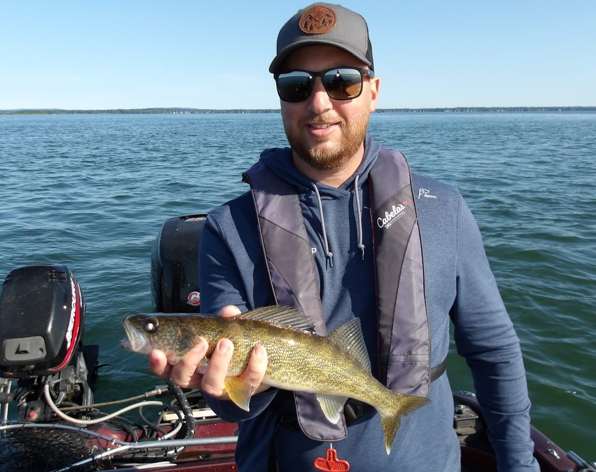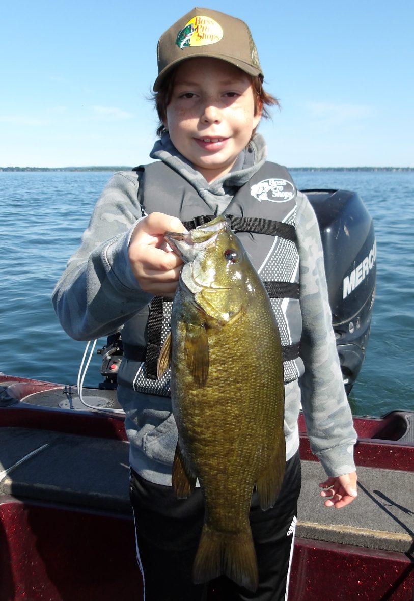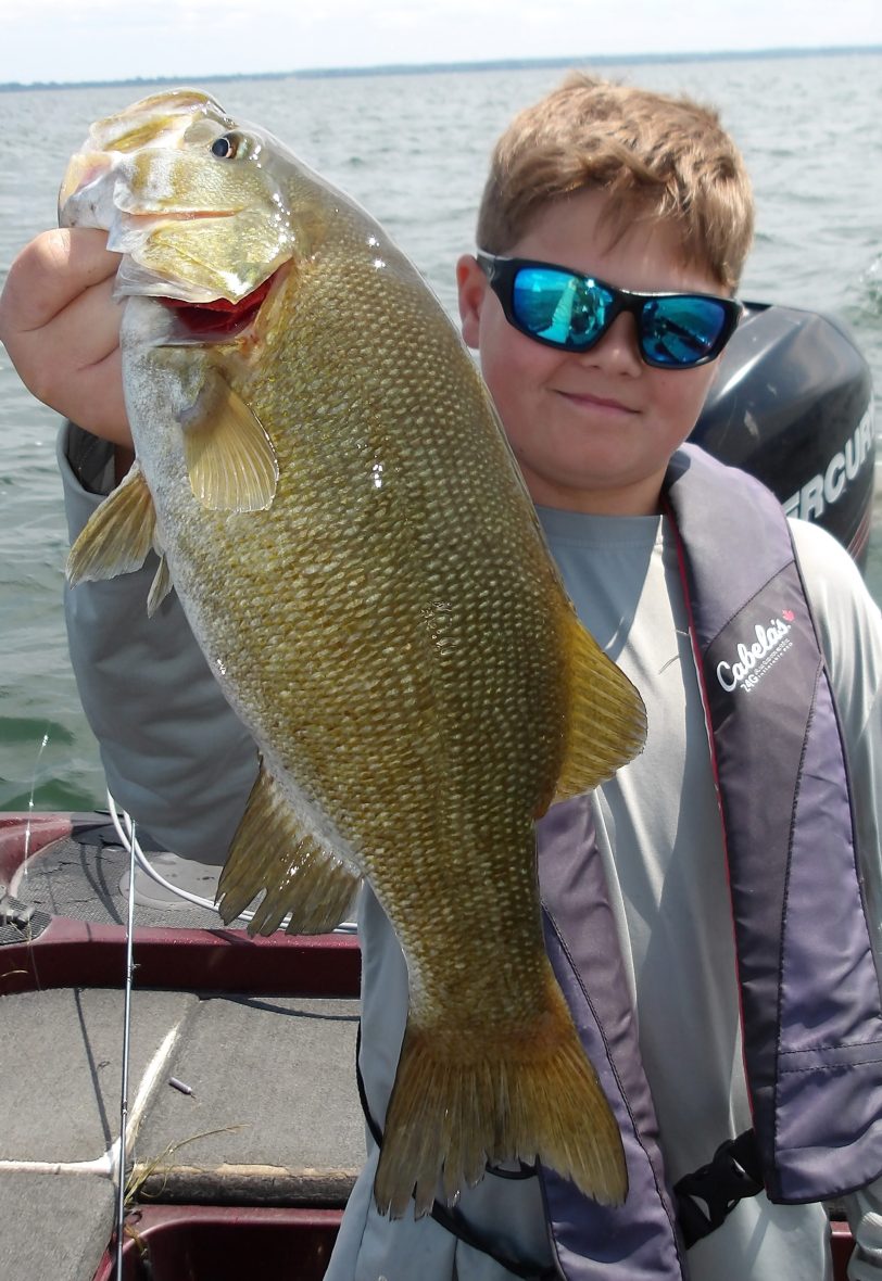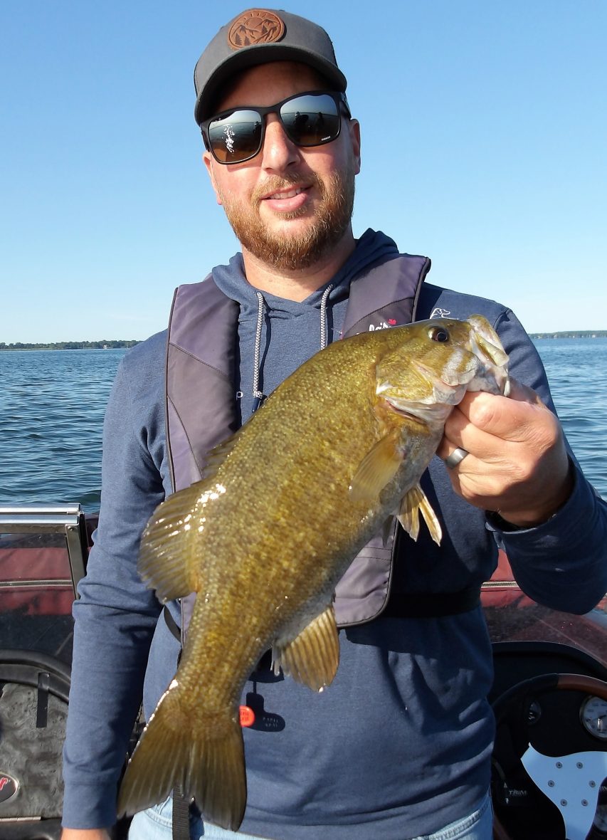 Steve and his son Pierce joined me this morning, after a cold front last night. Most fish weren’t in much of a mood to eat, everywhere we tried, but there were some that did. From shallow to mid to deepwater, they picked at them for most of the morning. The best area was definitely the deep water as several smallies were taken from here. In the last hour however, I decided to try a troll and it proved to be successful for the larger fish. Steve managed to land the biggest fish of the day right at the wire, with a good-sized walleye. I’m pretty sure the afternoon bite would have ben better with the air beginning to warm. Too bad we weren’t out for the entire day!!