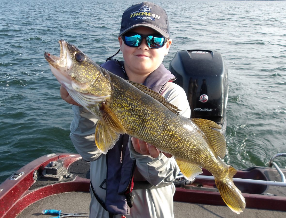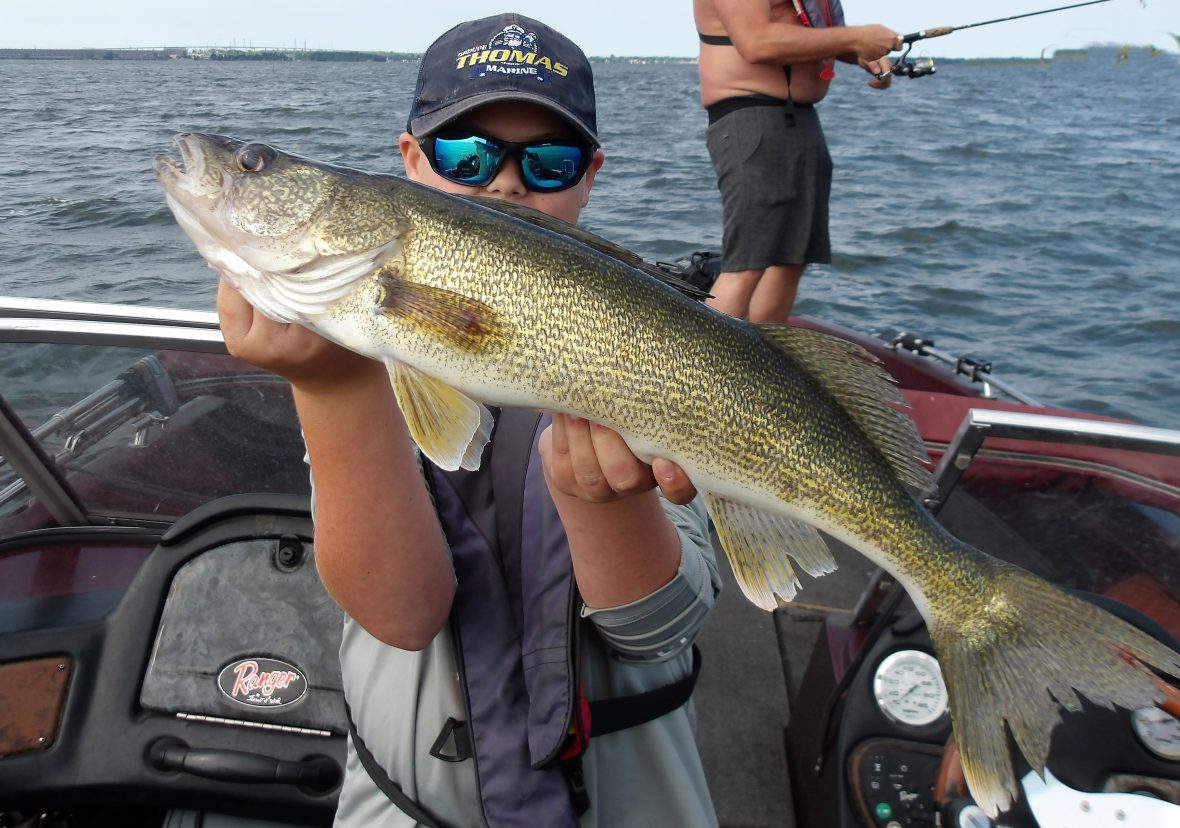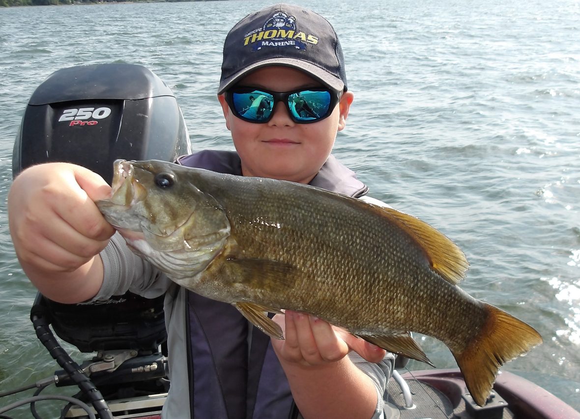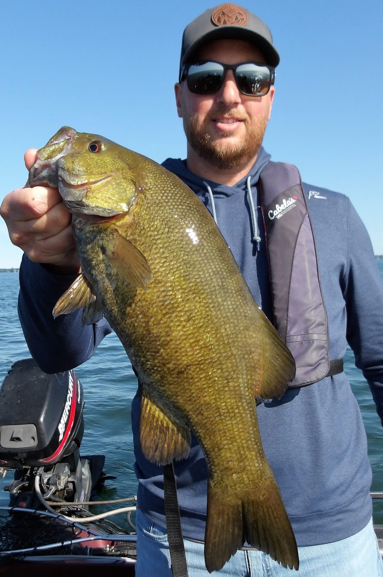 Steve and his son Pierce joined me this morning, after a cold front last night. Most fish weren’t in much of a mood to eat, everywhere we tried, but there were some that did. From shallow to mid to deepwater, they picked at them for most of the morning. The best area was definitely the deep water as several smallies were taken from here. In the last hour however, I decided to try a troll and it proved to be successful for the larger fish. Steve managed to land the biggest fish of the day right at the wire, with a good-sized walleye. I’m pretty sure the afternoon bite would have ben better with the air beginning to warm. Too bad we weren’t out for the entire day!!